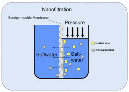 NF operates with less pressure reverses osmosis and is still able to remove a significant proportion of inorganic and organic molecules.