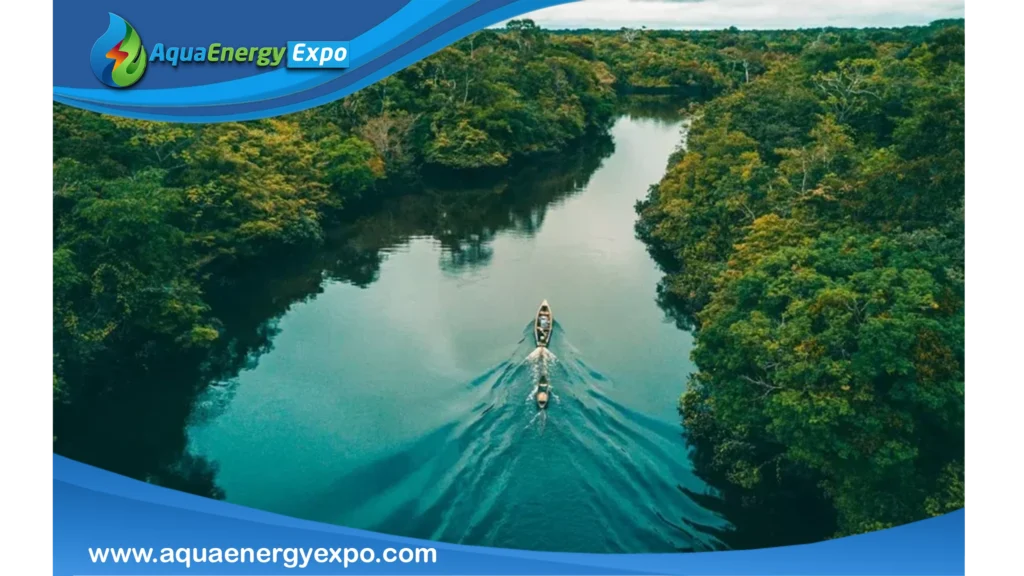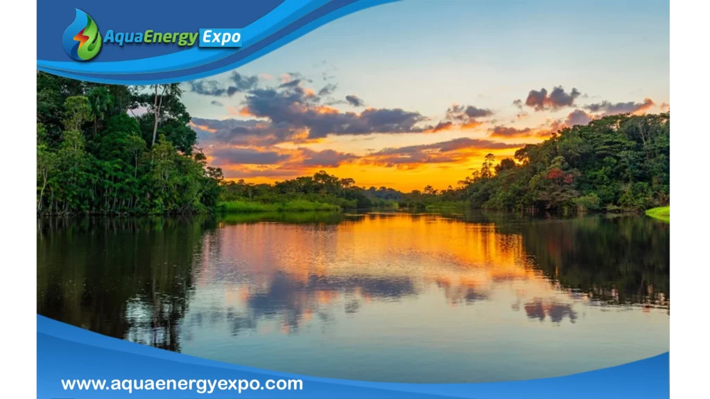The Amazon River basin is the largest in the world, with an alluvial plain ranging from 19 to 50 kilometers wide, covering an area of 7,413,827 square kilometers and containing 20% of the Earth’s freshwater. This basin spans eight countries: Brazil (68%), Peru (14%), Bolivia (10%), and Ecuador (2%), with the remaining 6% shared among Colombia, Venezuela, Guyana, and Suriname, collectively known as the Amazon region.